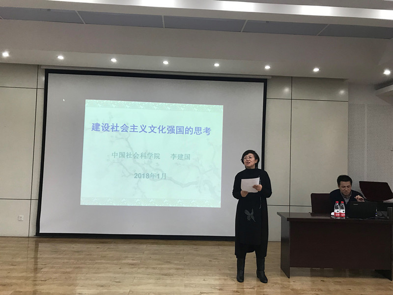 2018年1月9日,李建国研究员在我校活动中心326举办学术讲座。本次讲座的主题是《建设社会主义文化强国的思考》,主要从三个方面展开:一是认识文化的地位和作用;二是把握文化发展规律;三是担当文化发展责任,推动中国文化“走出去”。最后,李建国研究员强调:要坚持中国特色社会主义文化发展道路,激发全民族文化创新创造活力,建设社会主义文化强国。